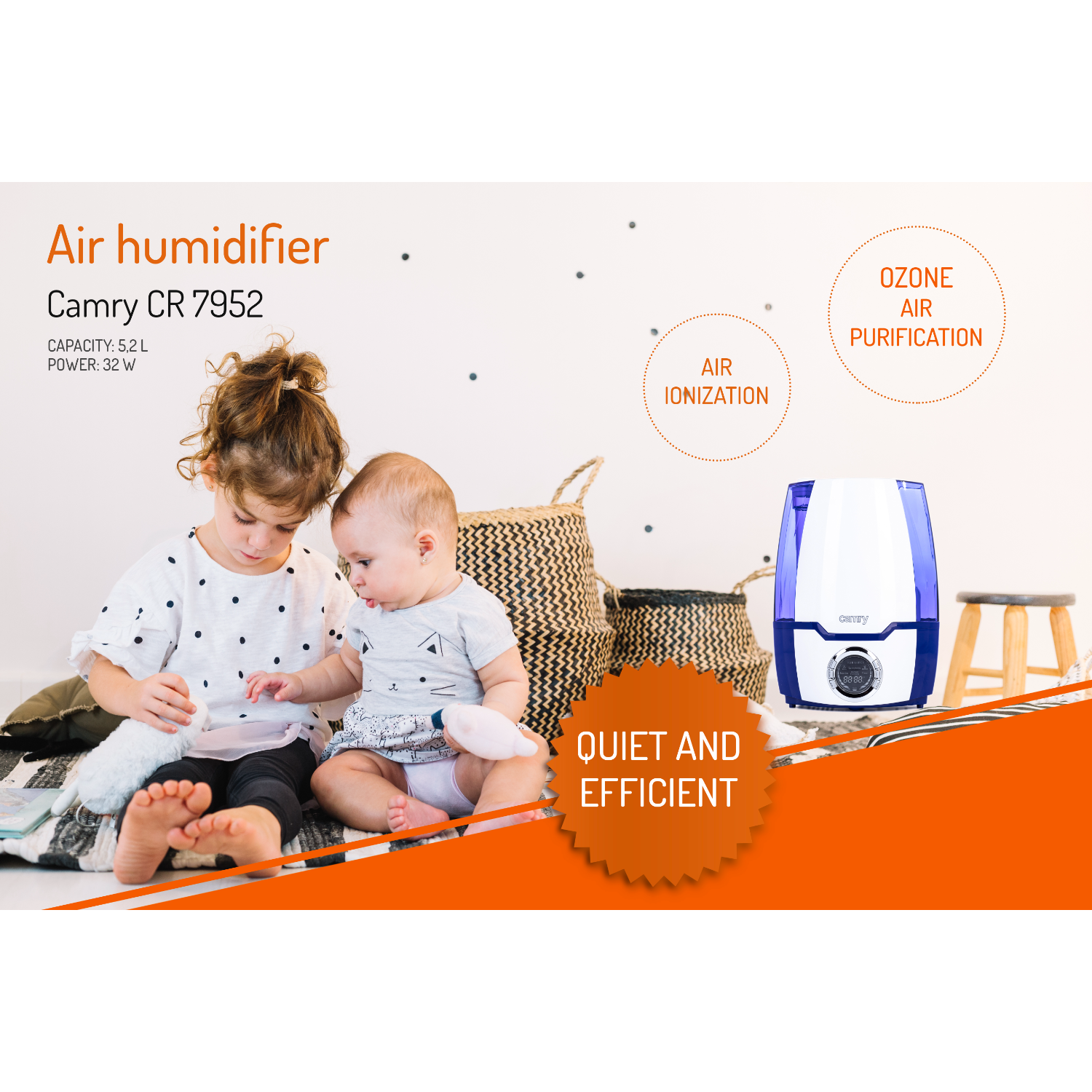 A silent and very efficient air humidifier. It is especially useful in offices or in conference rooms. Thanks to its strong motor that has 32W of power and a water container that has a capacity of 5.2l it is able to work even up to 17 hours with a very high efficiency of 320ml per hour. The water level sensor will not allow the device to work when there is no water. The air humidifier is also equipped with a adjustable humidification intensity.