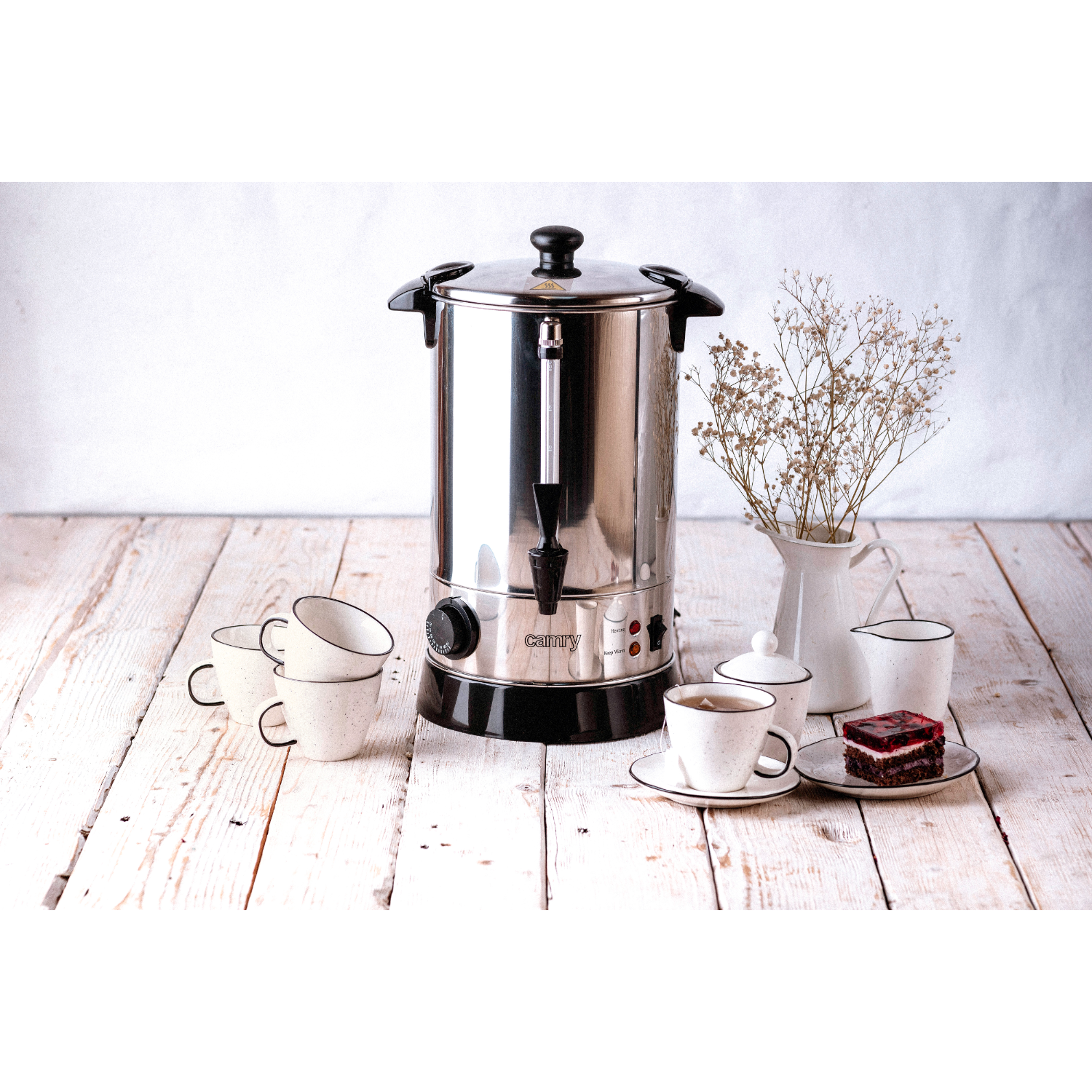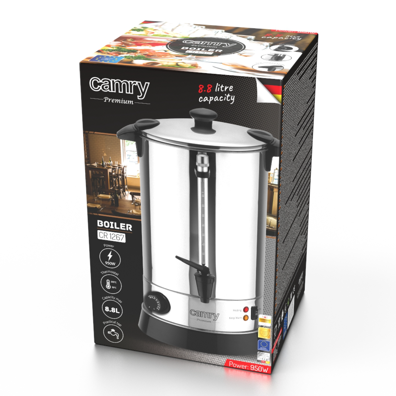 The stainless steel CR 1259 tea urn allows you not only to heat-up the water but also to keep its desired temperature. CR 1267 is absolutely irreplaceable during coffee-breaks, business-meetings, scientific conferences, or other social events. The compact size of the urn makes it a perfect choice for event agencies. The Camry tea urn is an easy-to-use and absolutely safe solution (heatproof handles and tap).