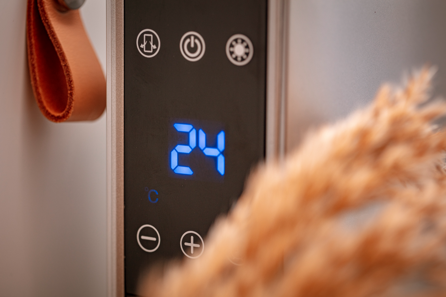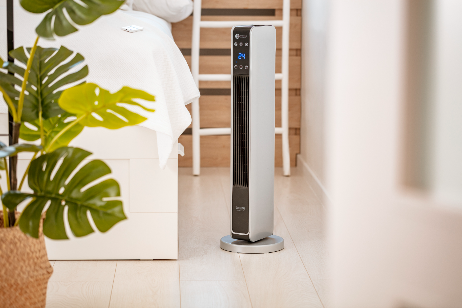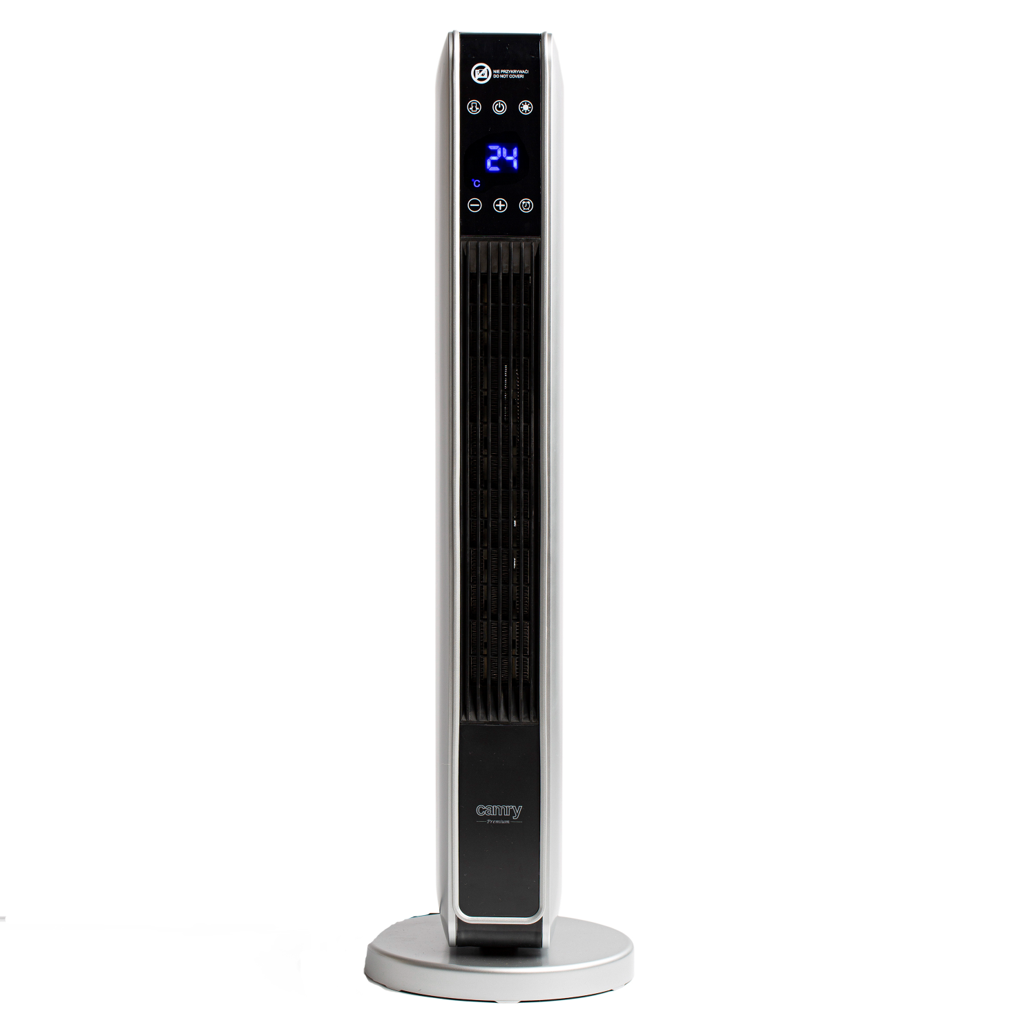 Fan heater with efficient ceramic heater, LCD display and remote control. The device has a timer that allows you to set the working time from 1 to 8 hours. LCD display indicates the selected temperature in the range of 10-49° C, activation of selected functions. The fan heater heats with power 1200W or 2200W, has a horizontal oscillation function in the 70° range, a safety switch that automatically cuts off power in the event of the device overturning, protection against overheating and a handle for convenience of carrying. The device is equipped with a remote control and storage space.