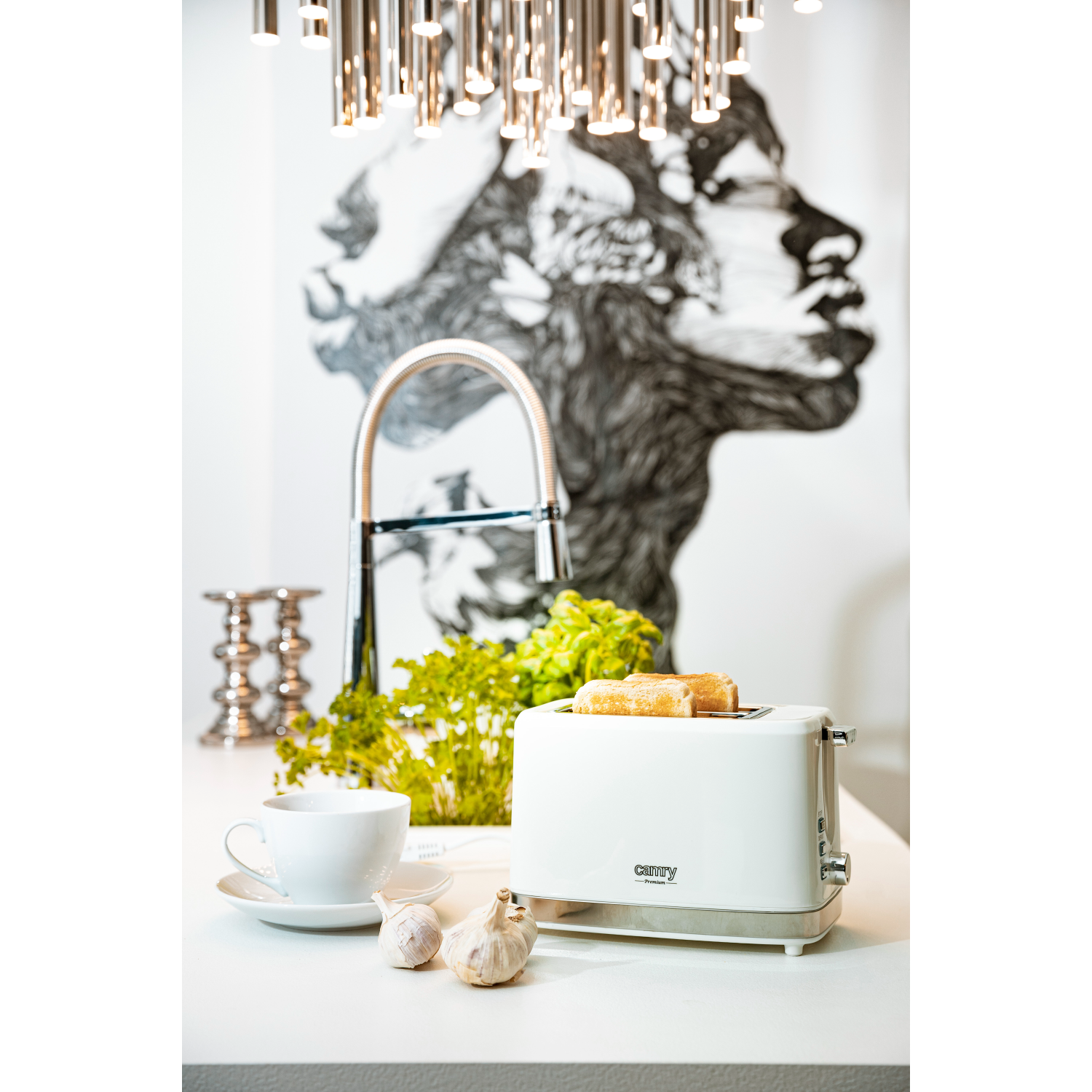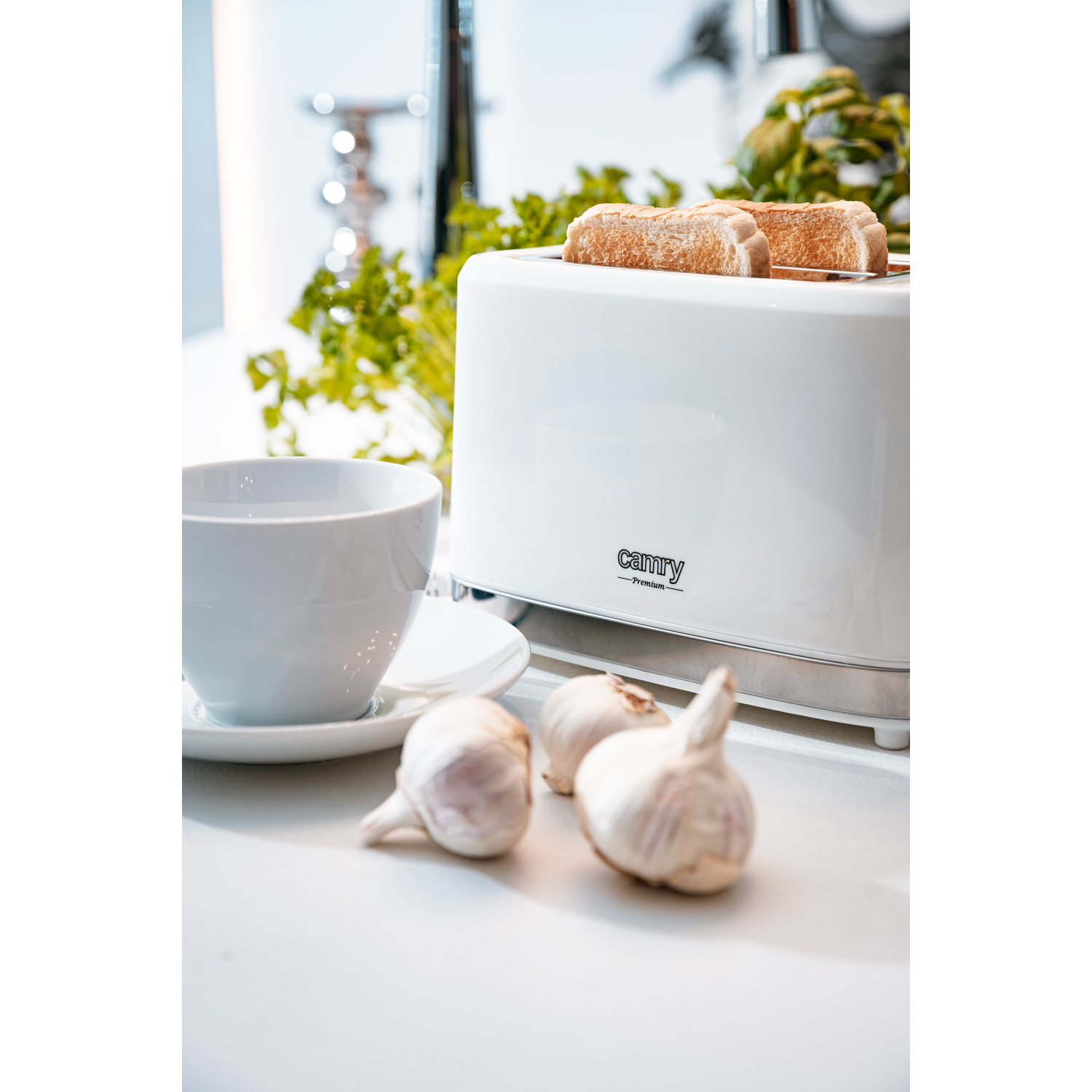 An efficient 900 W toaster in which two toasts at a time can be prepared. The browning adjustment knob allows to prepare toasts the way one likes the best. Thanks to that they are exactly as crispy as they should be. The crumb tray helps in keeping the device, as well as the place where one prepares a meal, clean. When the toaster is on its housing remains cool – this is one of the factors that increase the safety of operating the device. One can stop the browning process using the STOP button. The toaster has also a bonus function increasing its utility – a grill to heat up bread rolls.