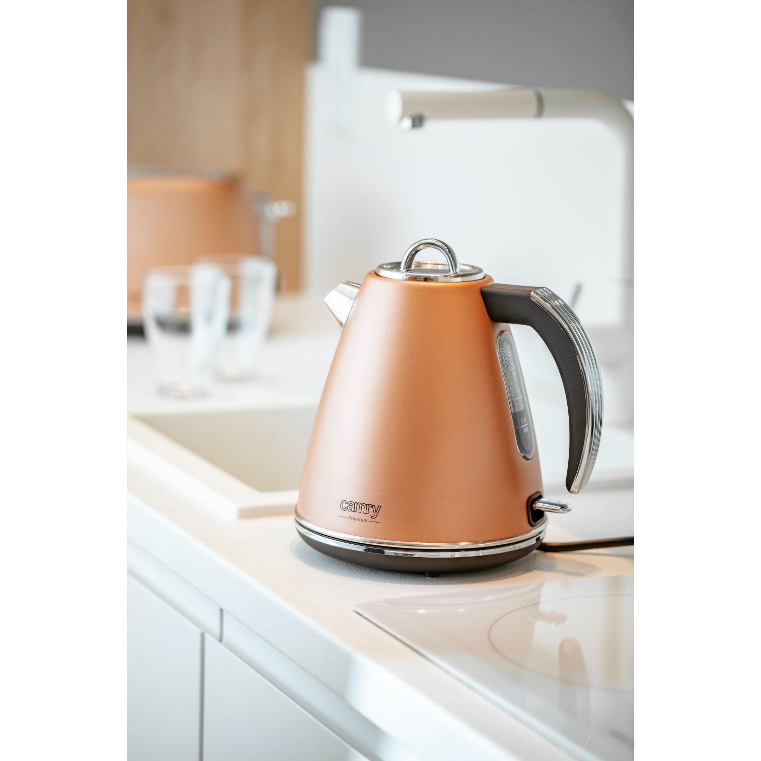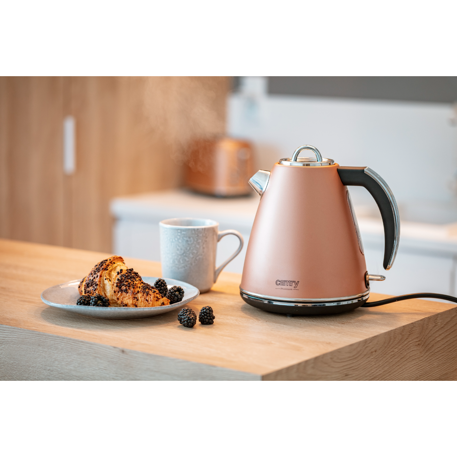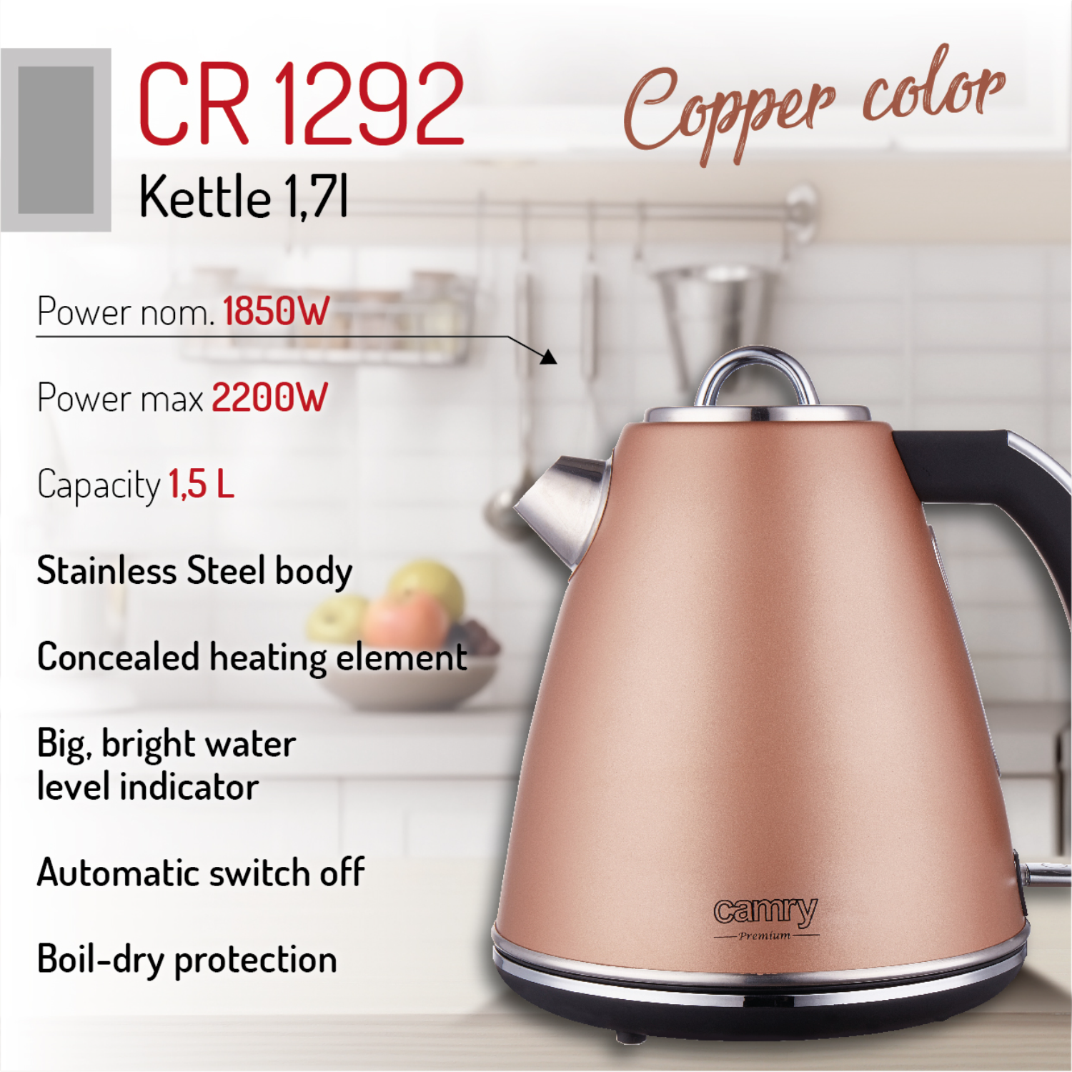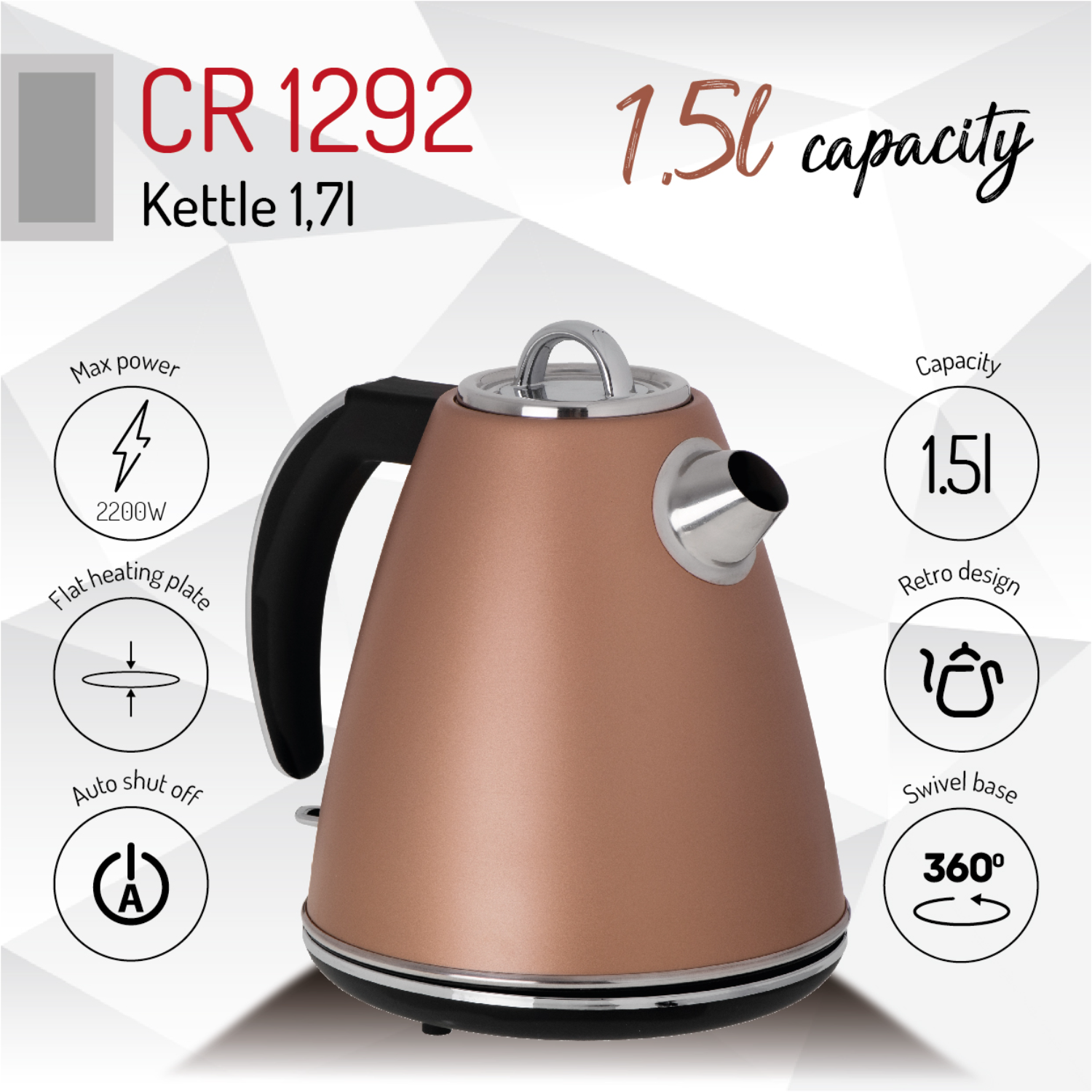 Classic 1,5-litre electric kettle is useful in every kitchen. For safety reasons it is equipped with an auto switch-off which protects the kettle from boiling dry and switch the kettle off immediately after the water boils. Its functionality is increased by a stable base and a bright water level indicator. The kettle is made of stainless steel and is equipped with a powerful 1850-2200W heating element what makes it a sprint master in water boiling. The kettles modern design and silver housing i supplemented by control lamp.