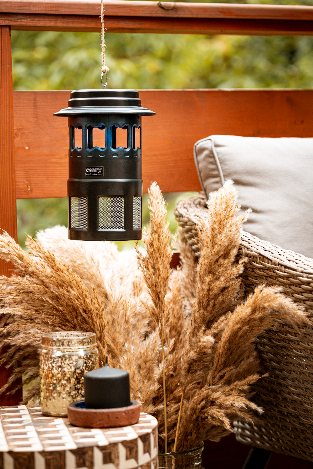 The CR7936 mosquito killer lamp is a modern device that comprehensively solves the problem of intrusive insects in our environment. The device attracts insects with LED light with a wavelength of 395nm, sucks the mosquitoes by fan inside the device, then dries (dehydrates) in the container under the fan, leading to the death of insects. The ensnared insects that are still alive attract the opposite sex of their species with pheromones, attracting more insects. The device removes insects from the environment, without using chemicals. It is much more aesthetic than hanging insect patches – as our grandmothers did. Compared to aerosols, the device does not emit any chemicals, it does not expose us to inhalation of suffocating fumes and harmful substances – as our mothers did. Place the device in any place that is exposed to increased insect activity. We recommend hanging the device 2 meters above the floor, as insects often fly low. Mosquitoes UVA LED lamps are safe for our health. The emitted ultraviolet radiation is completely harmless to humans and pets, and the housing made of metal, long-term use of the lamp. The method of use is important for performance. Connect the device to an electrical outlet before turning on the light, or suddenly turn off all strong lights for 10-20 minutes. Use the device away from places strongly exposed to UV rays and fluorescent lamps.