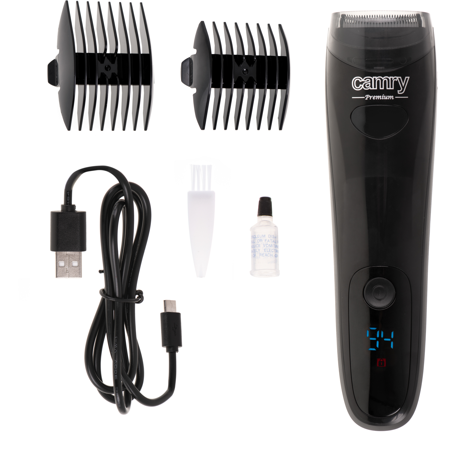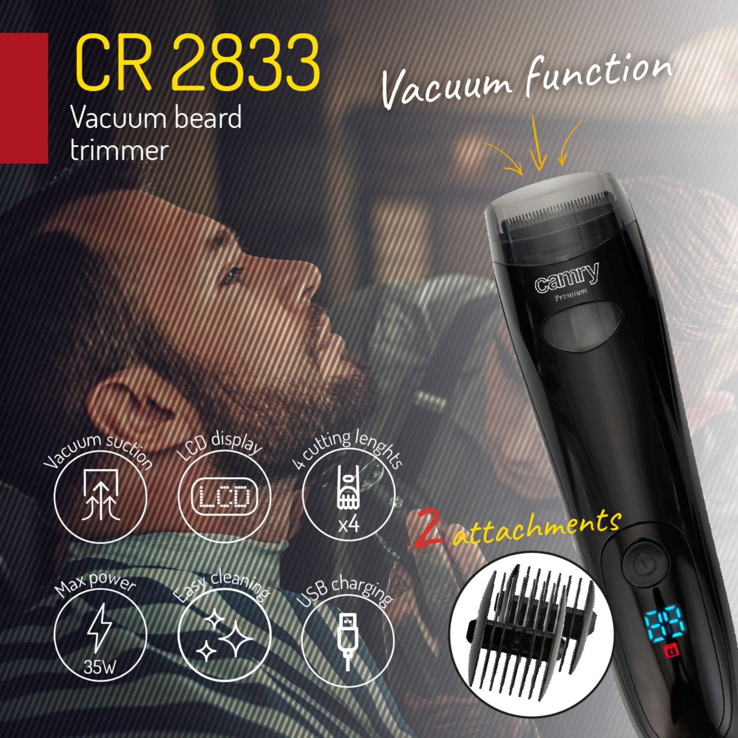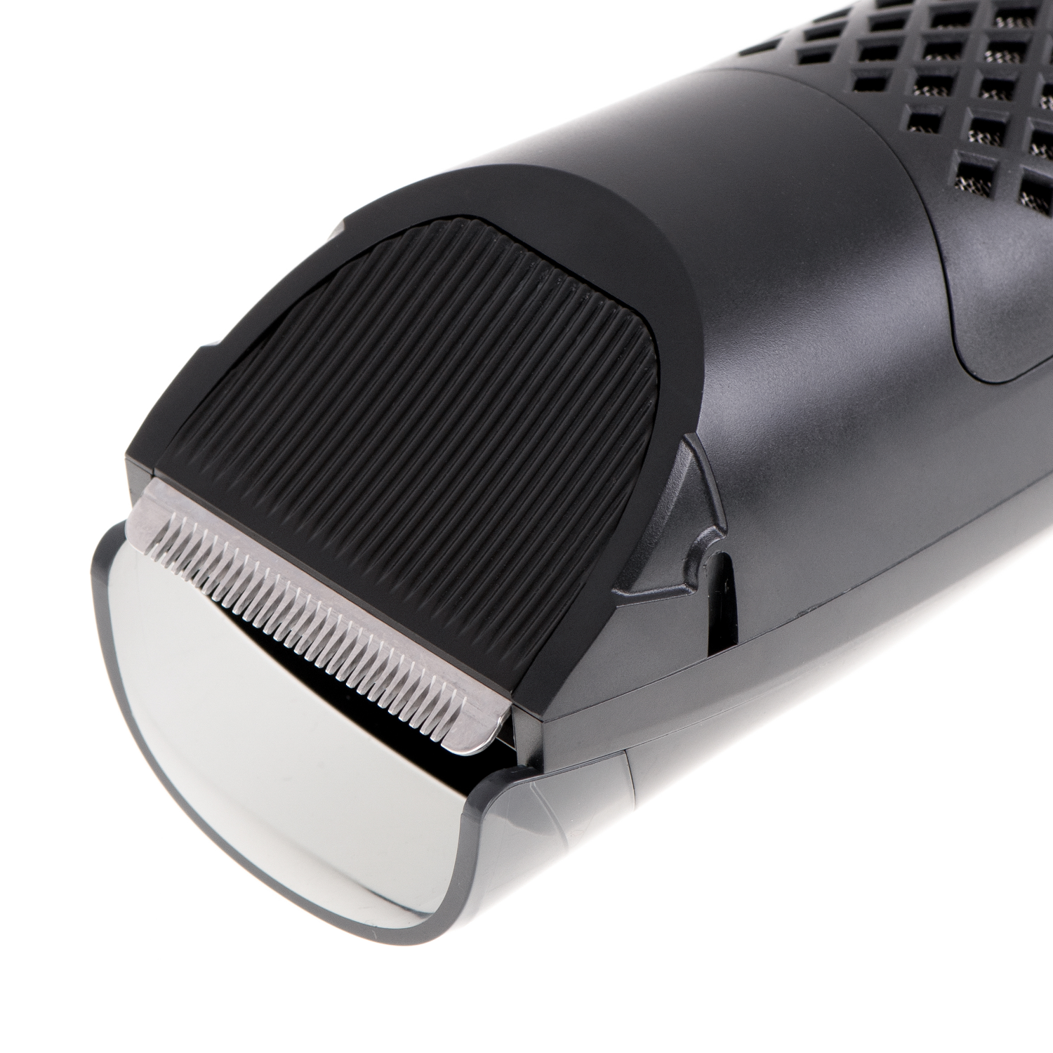 A precise and elegant trimmer with the function of vacuum hair suction. The blade can be covered with one of 2 spacers. A cleaning brush is also included. It only needs to be charged via a USB cable so you can use it anywhere, anytime. The device also has an LCD display.